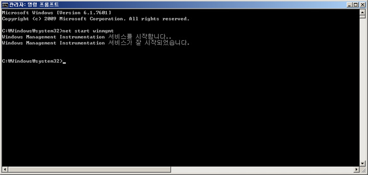 c:\windows\system32\wbem 폴더로 이동합니다. Repository 폴더의 이름을 다른 이름으로 변경 합니다. (예) Repository_abc