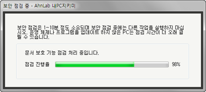 보안 점검 진행 화면이 나타납니다. 보안 점검은 사용자 PC 환경에 따라 1~10분 정도 소요됩니다.