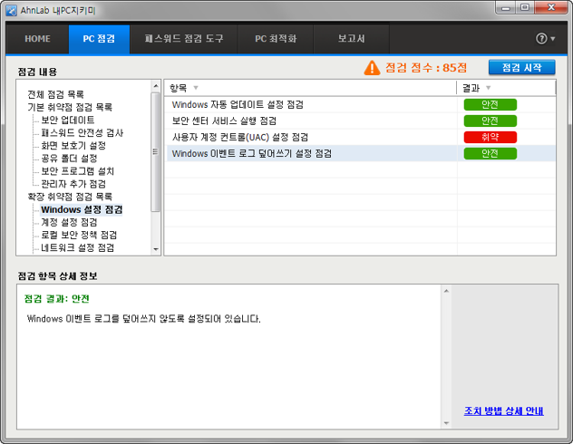보안 점검을 실행하여 점검 결과를 확인합니다.