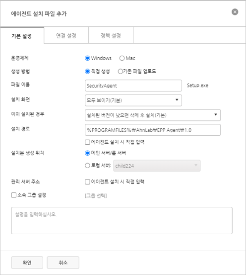 설명: 에이전트 설치 파일에 대한 설명 정보를 입력합니다.
