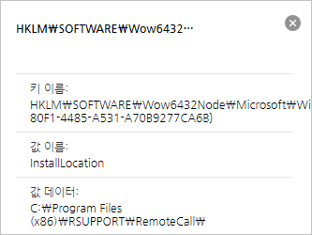 연관 관계 다이어그램에서 레지스트리 아이콘을 클릭하면 화면 오른쪽에 탐지된 레지스트리 정보가 표시됩니다. 레지스트리 정보에서는 별도의 대응하기가 없습니다.