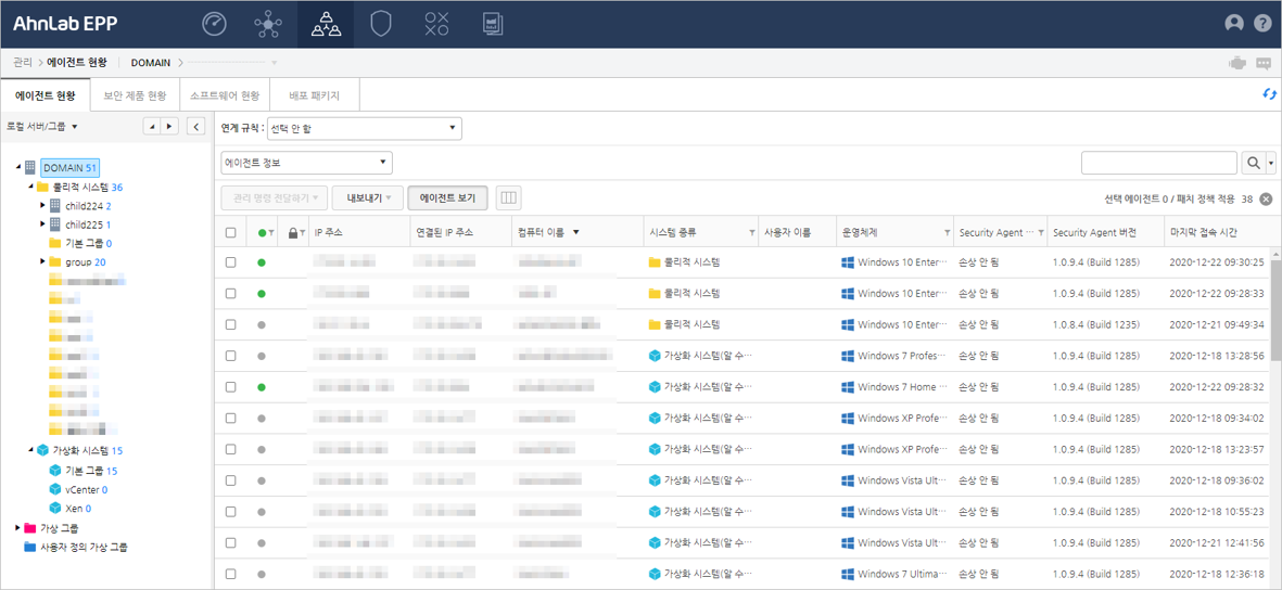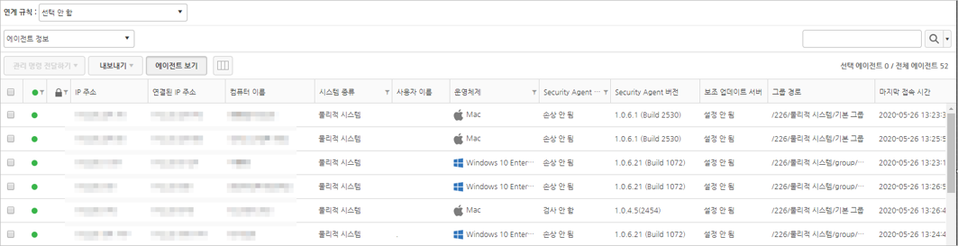 선택한 도메인이나 그룹의 에이전트 정보를 확인할 수 있습니다. 에이전트