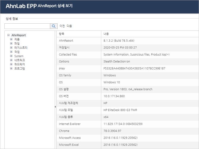 AhnReport/Artifact 수집 목록이 나타나면 정보를 확인합니다.