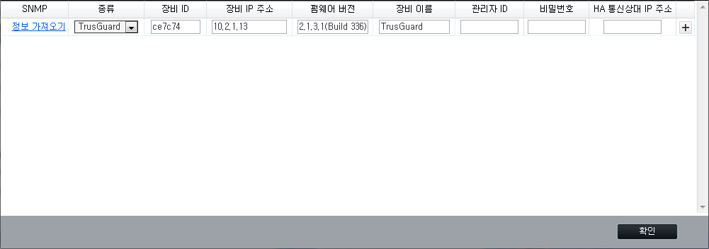 - <장비 추가>에서 SNMP 열 아래에 있는 정보