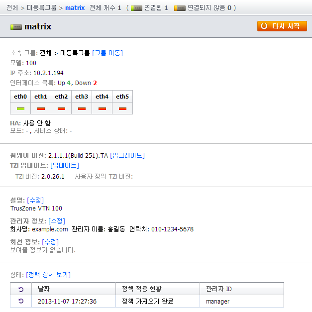 연결할 때 1, AhnLab TrusGuard Manager와 연결할 때 0을 입력합니다.