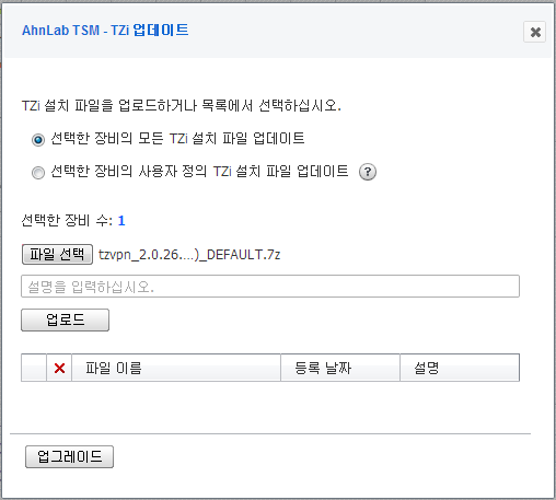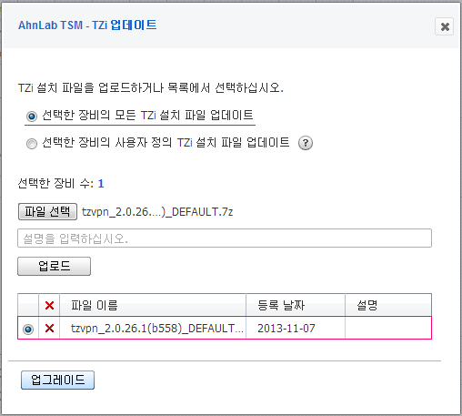 - <TZi 업데이트>에서 TZi 설치 파일을 TSM에 등록합니다.