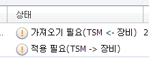가져오기 필요(TSM <- 장비)는 장비의 로컬 설정/정책에 변경이 있었음을 의미합니다. 아이콘을 누르면