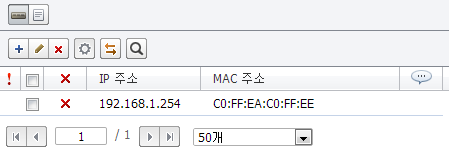 ARP 테이블에 영구 엔트리로 등록할 ARP 항목을 설정합니다. 여기에 등록된 ARP 항목은