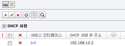 서비스 인터페이스는 DHCP 서버와 연결된 인터페이스와 DHCP 클라이언트와 연결된 인터페이스를 모두 선택하거나, 브리지 인터페이스이어야 합니다.