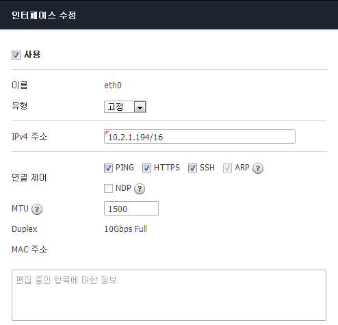 클릭합니다.<인터페이스 수정> 설정/정책 편집기에서 유형으로 고정을 선택합니다. 나머지 속성을 지정하고 저장을 클릭합니다.