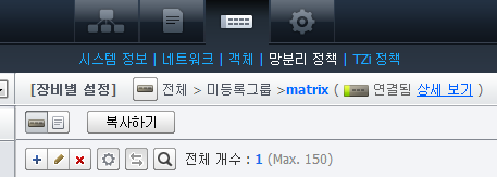 장비별 설정 화면은 관리 대상 장비 유형에 따라 사용할 수 있는 메뉴가 각각 다르게 나타납니다.