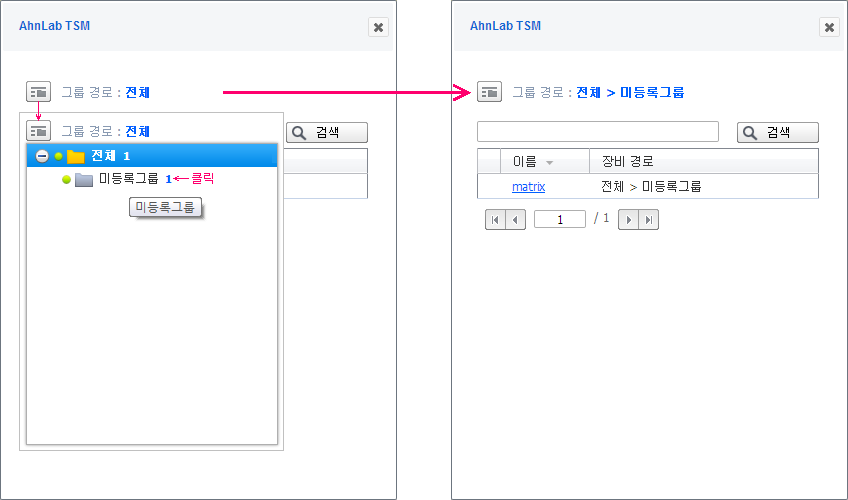 장비 그룹 목록이 나타납니다. 이동할 그룹을 선택하고 클릭합니다.