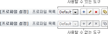 프로파일 설정과 장비별 설정 화면에서 공통으로 사용하는 도구모음은 다음과 같습니다.