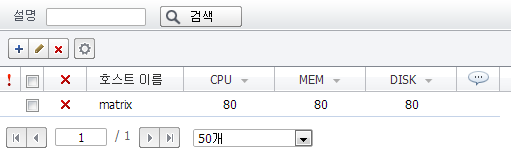 등록된 장비 목록에서 장비를 선택하고, 리소스 경보 임계값을 지정합니다.