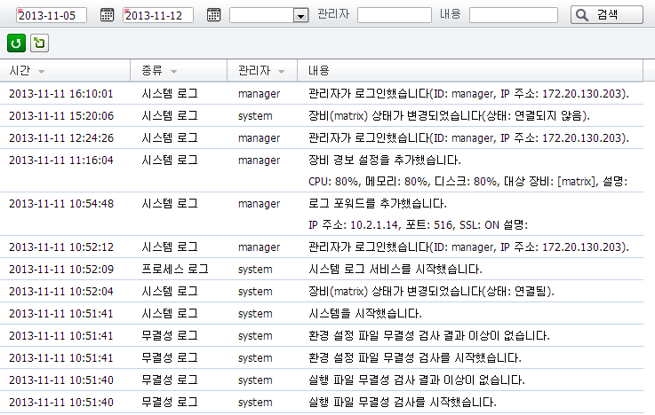 관리자의 작업 내역이나 기타 감사 대상 사건은 모두 로그로 기록됩니다.