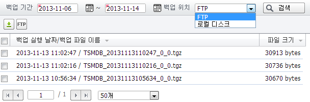 백업 위치로는 FTP 서버와 로컬 디스크를 지정할 수 있습니다. FTP 서버로부터 백업 데이터를 가져와 복원하려면 데이터