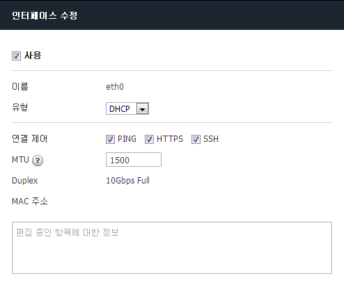 네트워크 포트에 IP 주소를 직접 할당하거나, PPPoE, DHCP 서비스를 이용해 IP 주소를 받아오도록 설정합니다.