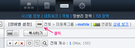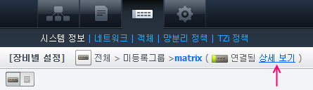 장비별 설정 화면은 관리 대상 장비 유형에 따라 사용할 수 있는 메뉴가 각각 다르게 나타납니다.
