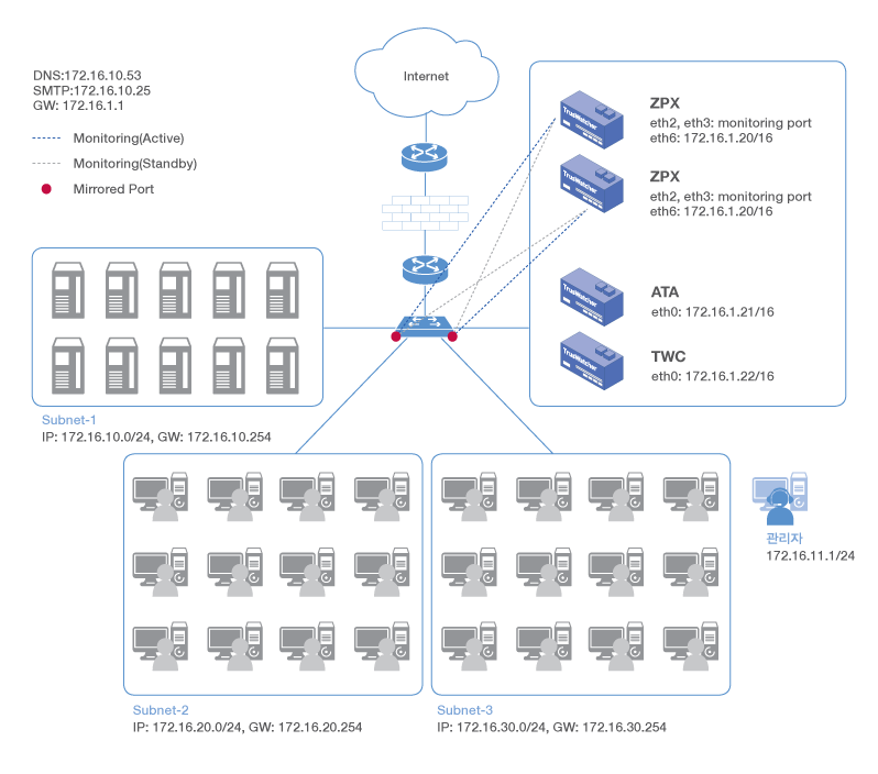 네트워크 구성 예제 - 2대의 ZPX를 사용한 HA 시스템 배치 구성